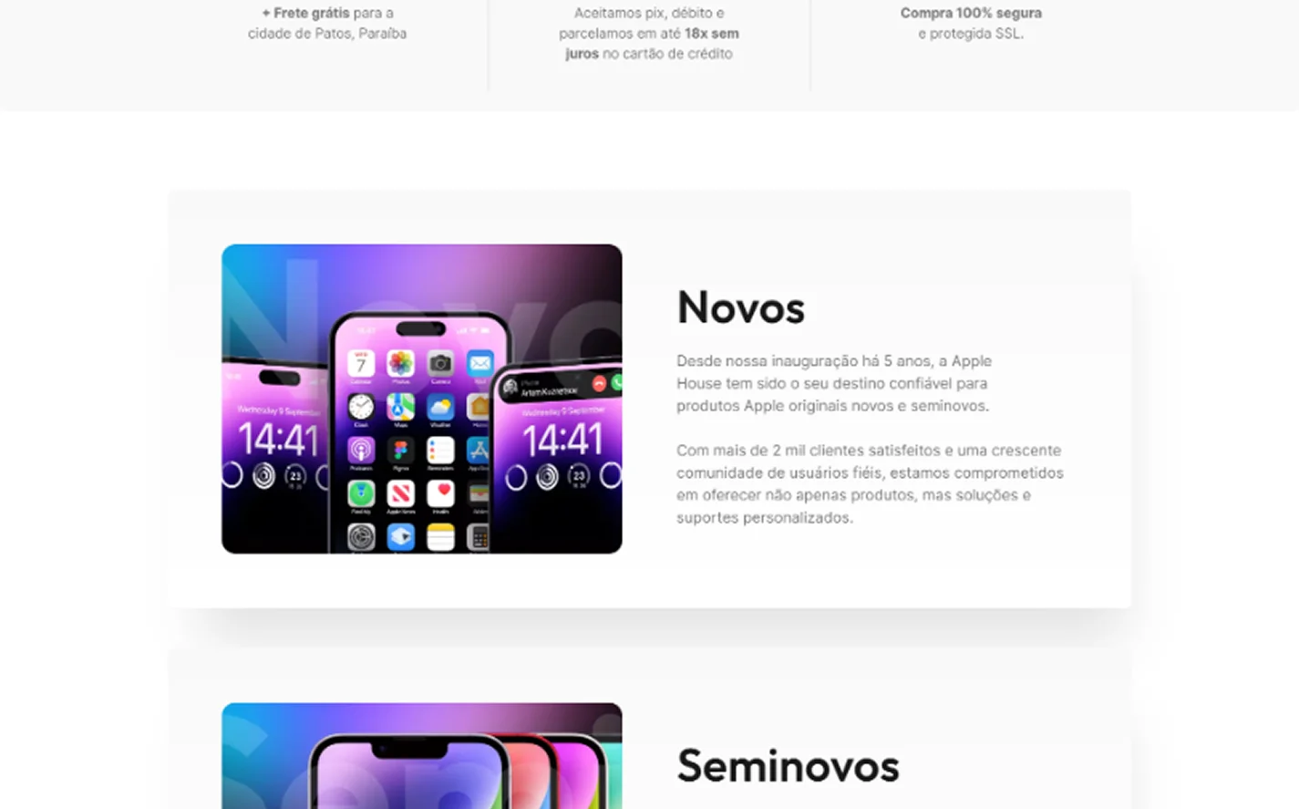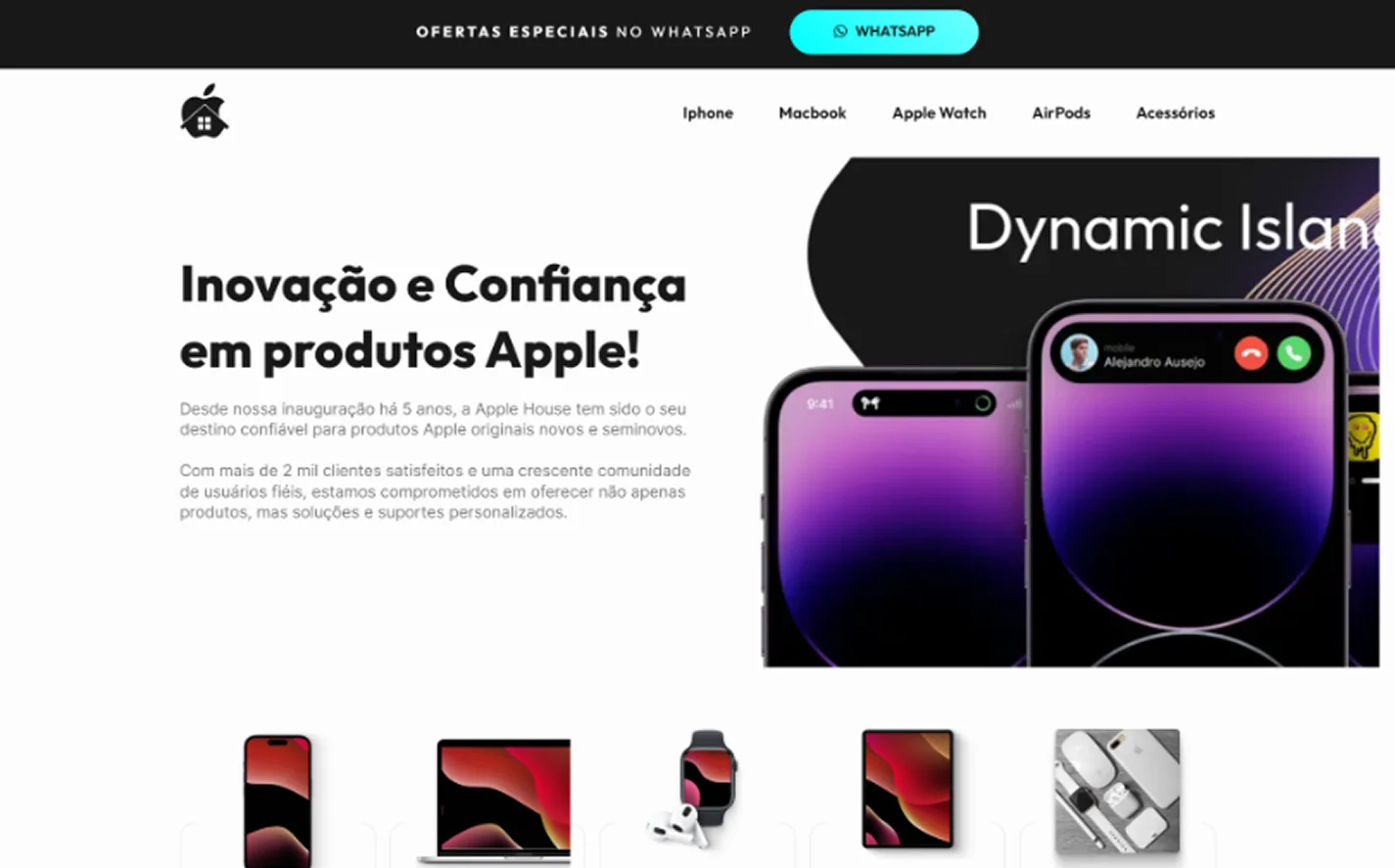 A Apple House precisava de um site que valorizasse seus produtos e transmitisse profissionalismo desde o primeiro clique. O maior desafio era transformar um catálogo simples em uma vitrine digital envolvente, que facilitasse a navegação e estimulasse a compra.